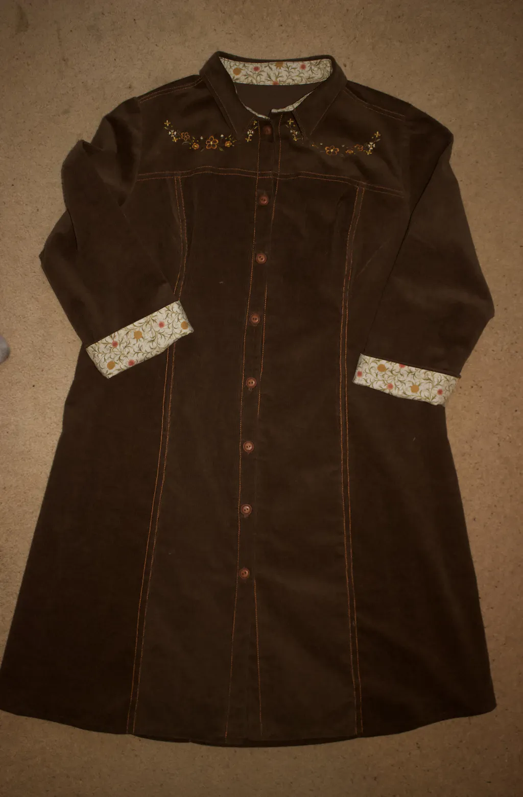 I used the free cuffed sleeve option (that can be found on the website) instead of the one that comes with the pattern as I wanted to make it more of a cold weather shirt (it is made of corduroy) and I couldn't see myself rolling the sleeves up and using the button tab.